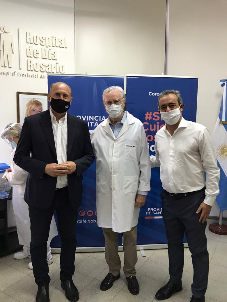 Santa Fe abrió el plan de vacunación al personal de la salud de la provincia en el Hospital Provincial del Centenario, en su Hospital de Día, ala construida por nuestra Fundación. La inauguración de la campaña contó con la presencia del gobernador Omar Perotti, la ministra de Salud Sonia Martorano, el secretario de Salud municipal Leonardo Caruana y el intendente Pablo Javkin.
