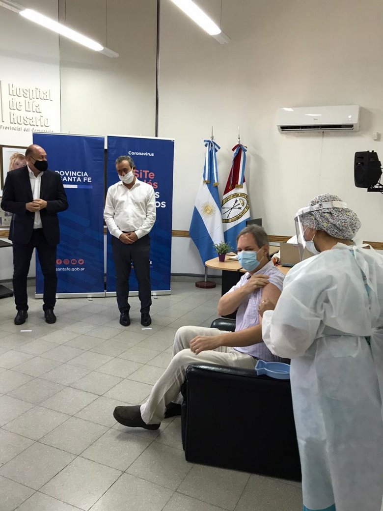 Entre las primeras personas que se vacunaron estuvieron el investigador de la Universidad Nacional de Rosario Roberto Parodi el jefe de la UTI del hospital Centenario Juan Tortorelli, el responsable del tercer nivel del Ministerio de Salud provincial Federico Fiorilli y la infectóloga y miembro del Consejo técnico Operativo de Covid 19 del Ministerio de Salud de Santa Fe Carolina Subirá.