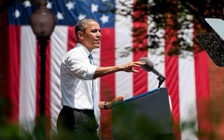 El Ex presidente de los EE.UU. Barack Obama brinda un discurso sobre el impacto del cambio climático en la Universidad de Georgetown.