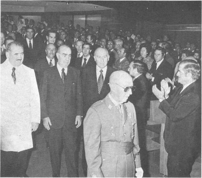 Inauguración de la residencia general de la ciudad "Primero de Octubre": El Ex-Jefe de Estado es aplaudido por el personal del nuevo centro asistencial de la Seguridad Social durante la visita a sus instalaciones.