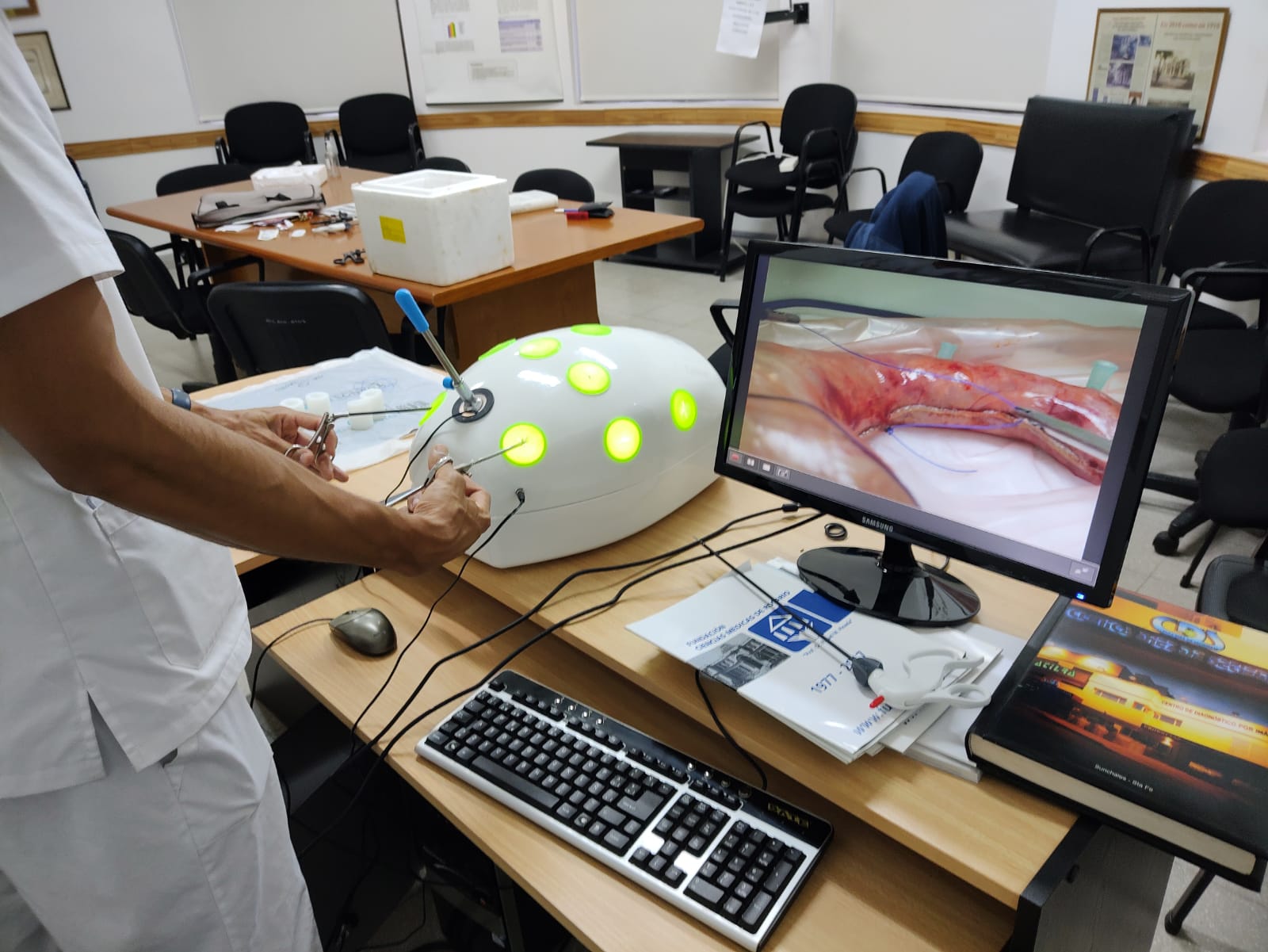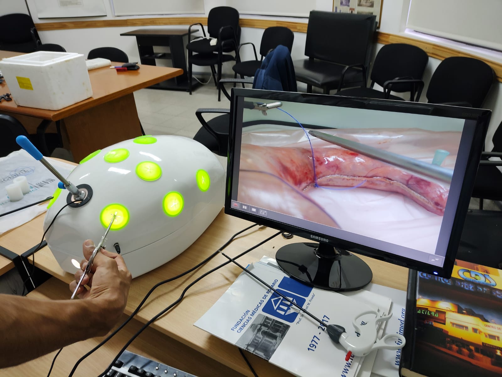 La Fundación Ciencias Médicas de Rosario adquirió simuladores para el entrenamiento en cirugía videolaparoscópicas de las diferentes áreas quirúrgicas de postgrado. Ubicados en el Hospital Provincial del Centenario.