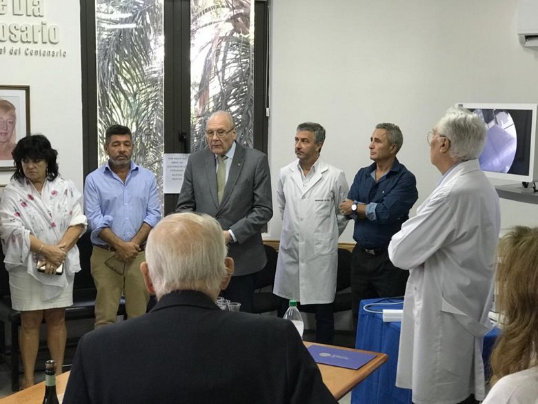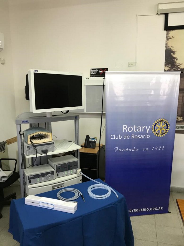 El presidente del Rotary Club Rosario, zona centro, Dr. Rogelio Boggino, gestionó una subvención de la Fundación Rotaria del Rotary Internacional, y con la cooperación de la Fundación se pudo adquirir una torre de videolaparoscopía de última generación para los quirófanos de Hospital de Día del Hospital Centenario.Este aporte de tecnología pone al Hospital de Día en niveles de óptima capacidad quirúrgica, siendo la laparoscopía un procedimiento cada vez más utilizado en pacientes que requieren cirugía ginecológica, abdominal u oral, entre otras, por ser mínimamente invasiva y reducir los riesgos de infección y las complicaciones post-operatorias, entre otras ventajas.