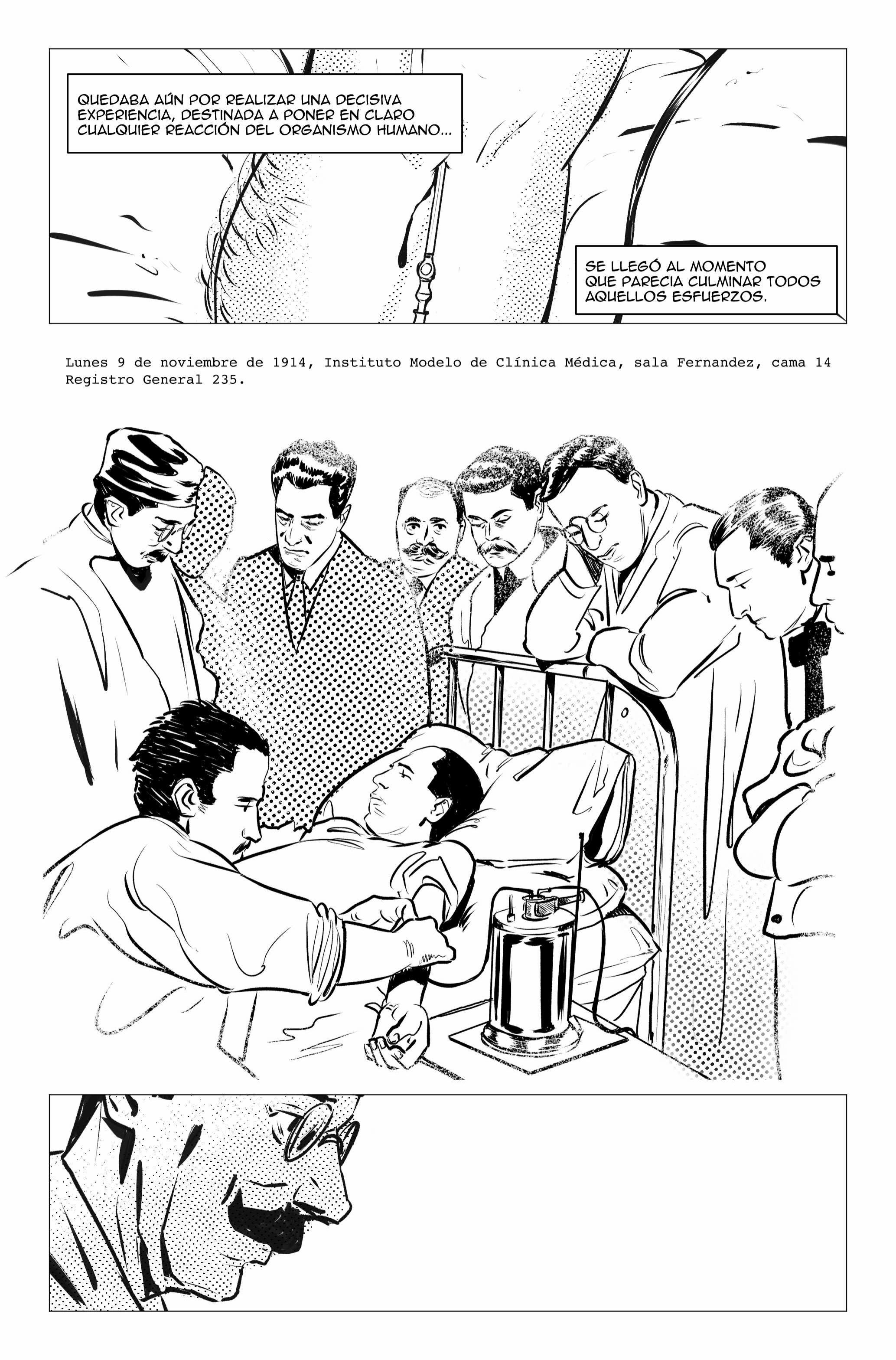 En los tres tomos de la historieta confluyen las investigaciones médicas vinculadas con la historia de la donación de sangre en Argentina.