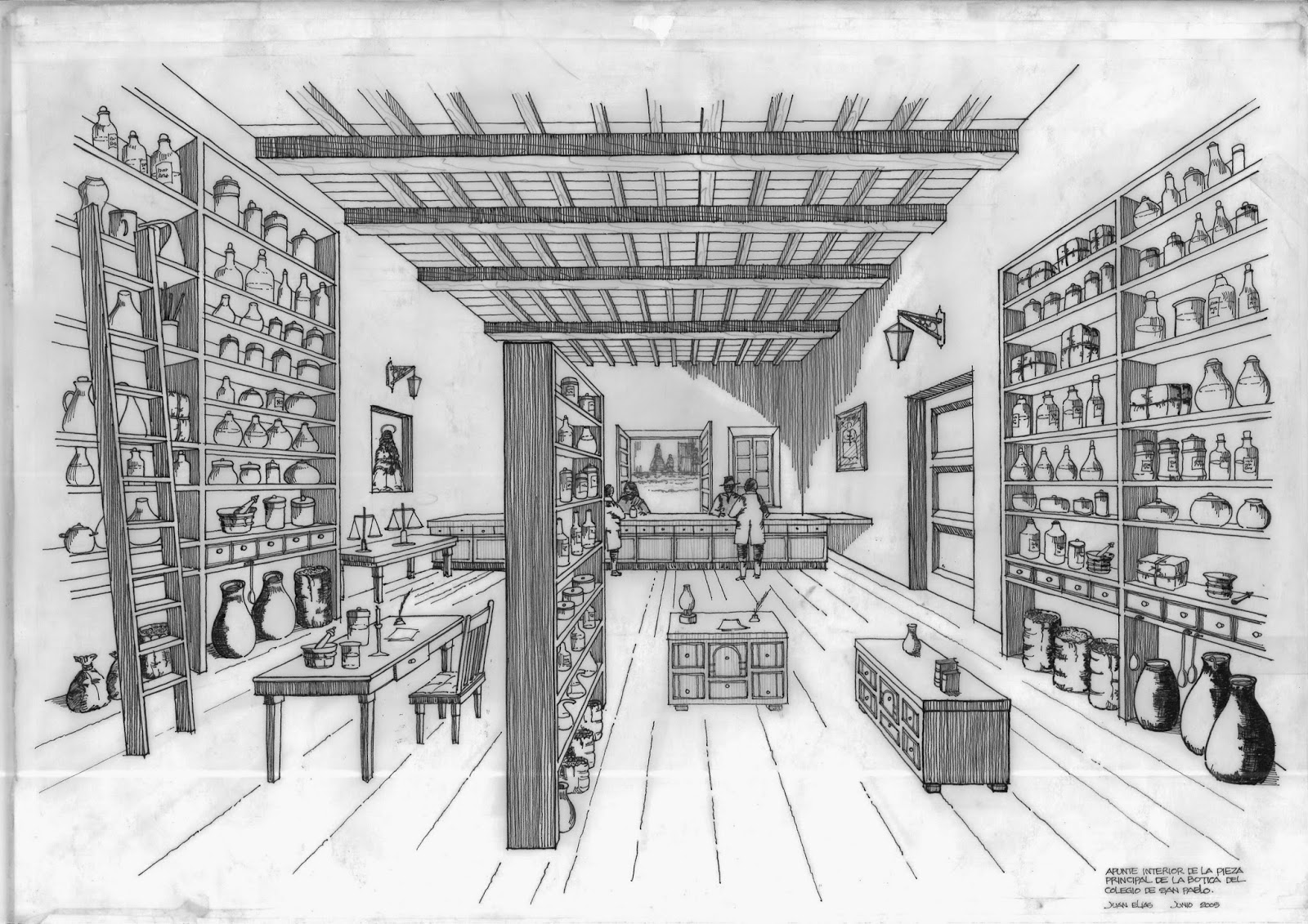 Además, su prestigio se asentaba en la gran cantidad de recursos medicinales que guardaban sus estantes y depósitos. Estaba tan bien provista, y eran tantos los que solicitaban sus medicamentos, que los superiores autorizaron que desde una ventana que daba a la calle se atendiera a los habitantes para el despacho de las medicinas.