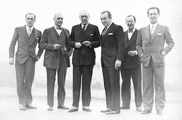 Rosario, año 1933. Artemio Zeno, Wenceslao Tejerina Fotheringham, Luis Santanelli y Carlos Sylvestre Begnis constituyeron la primera Comisión Directiva de la Sociedad de Cirugía de Rosario.