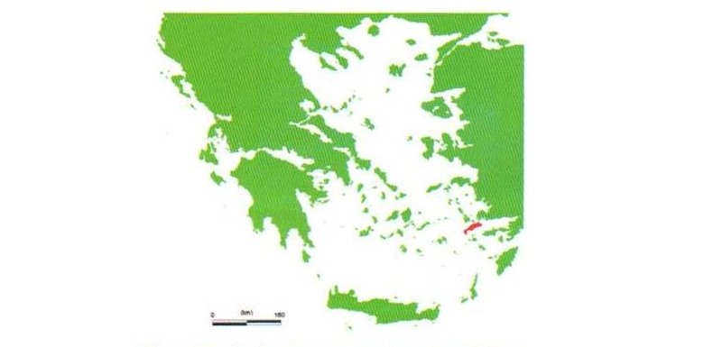 Figura 2: Isla de Kos (en rojo) en la periferia del Mar Egeo meridional, vecina a la costa turca