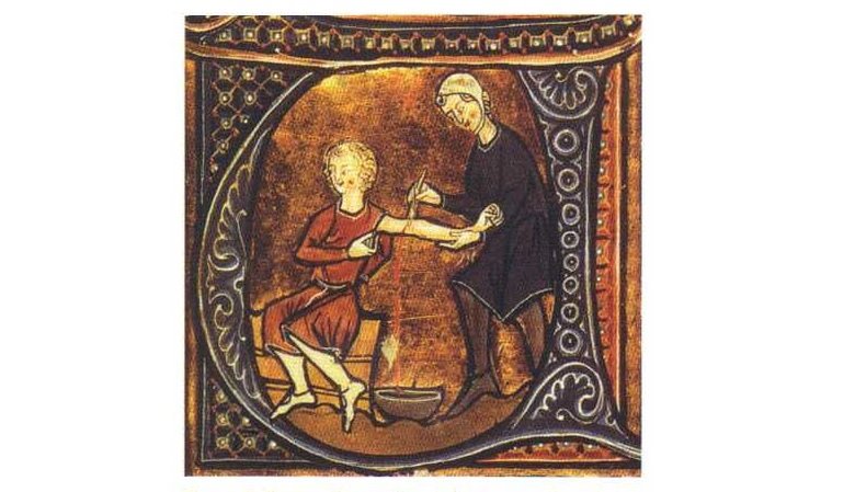 Figura 9: Ilustración medieval mostrando la práctica de una sangría.