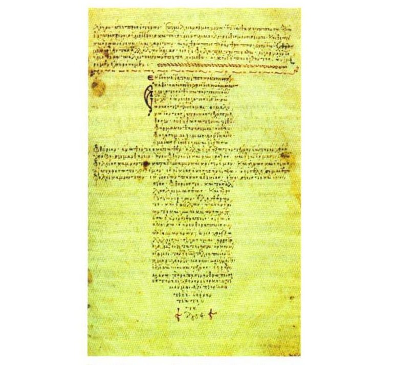 Figura 12: Juramento hipocrático en forma de cruz en un manuscrito bizantino del siglo XXI