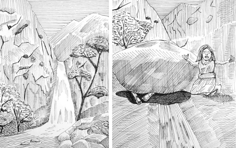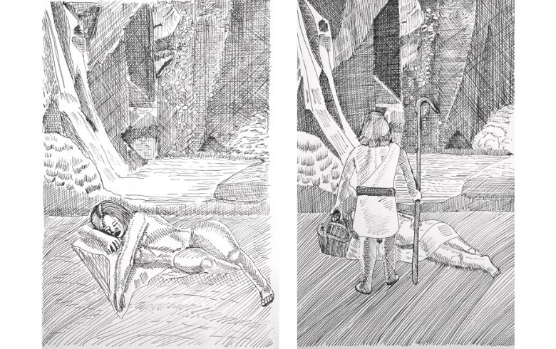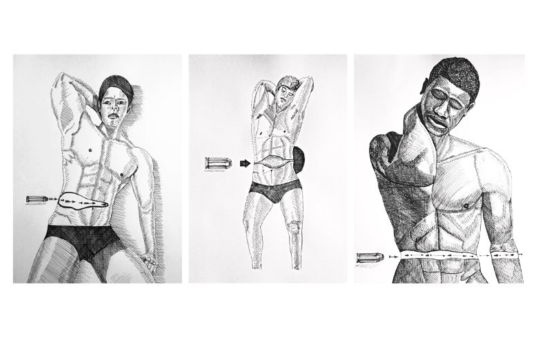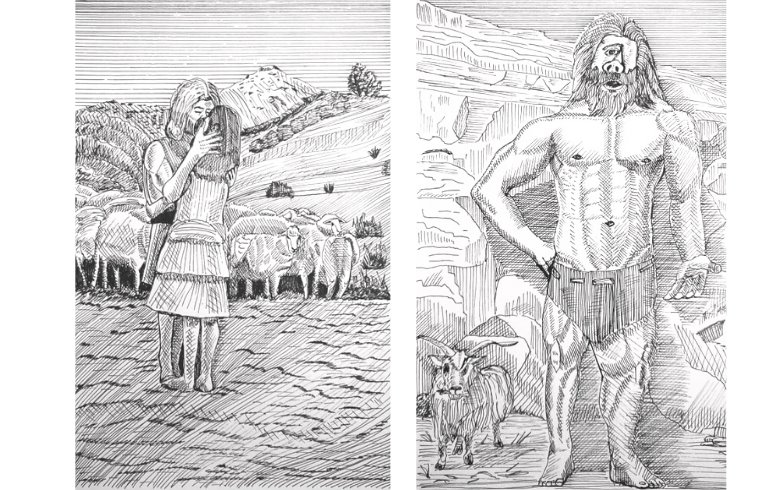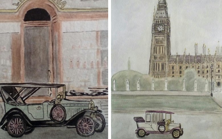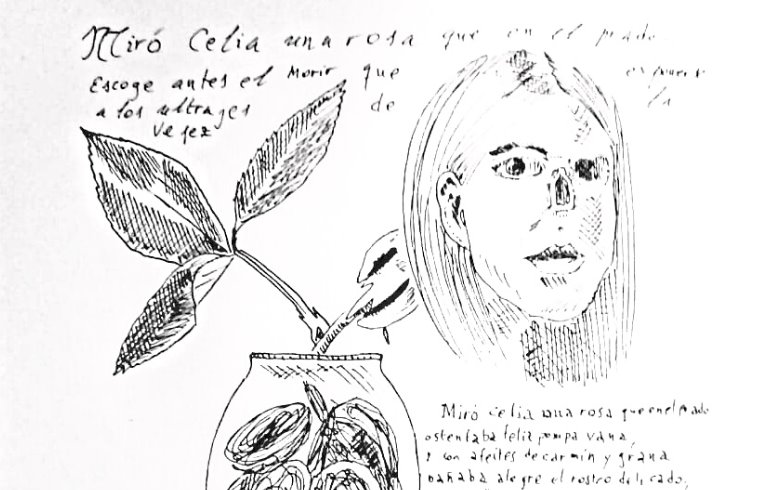Realiza dibujos, escribe poemas y hace interpretaciones de música clásica con instrumentos de viento.Trama, textura y creatividad. Tinta china sobre papel A4 150 gramos con isógrafo Rotring.